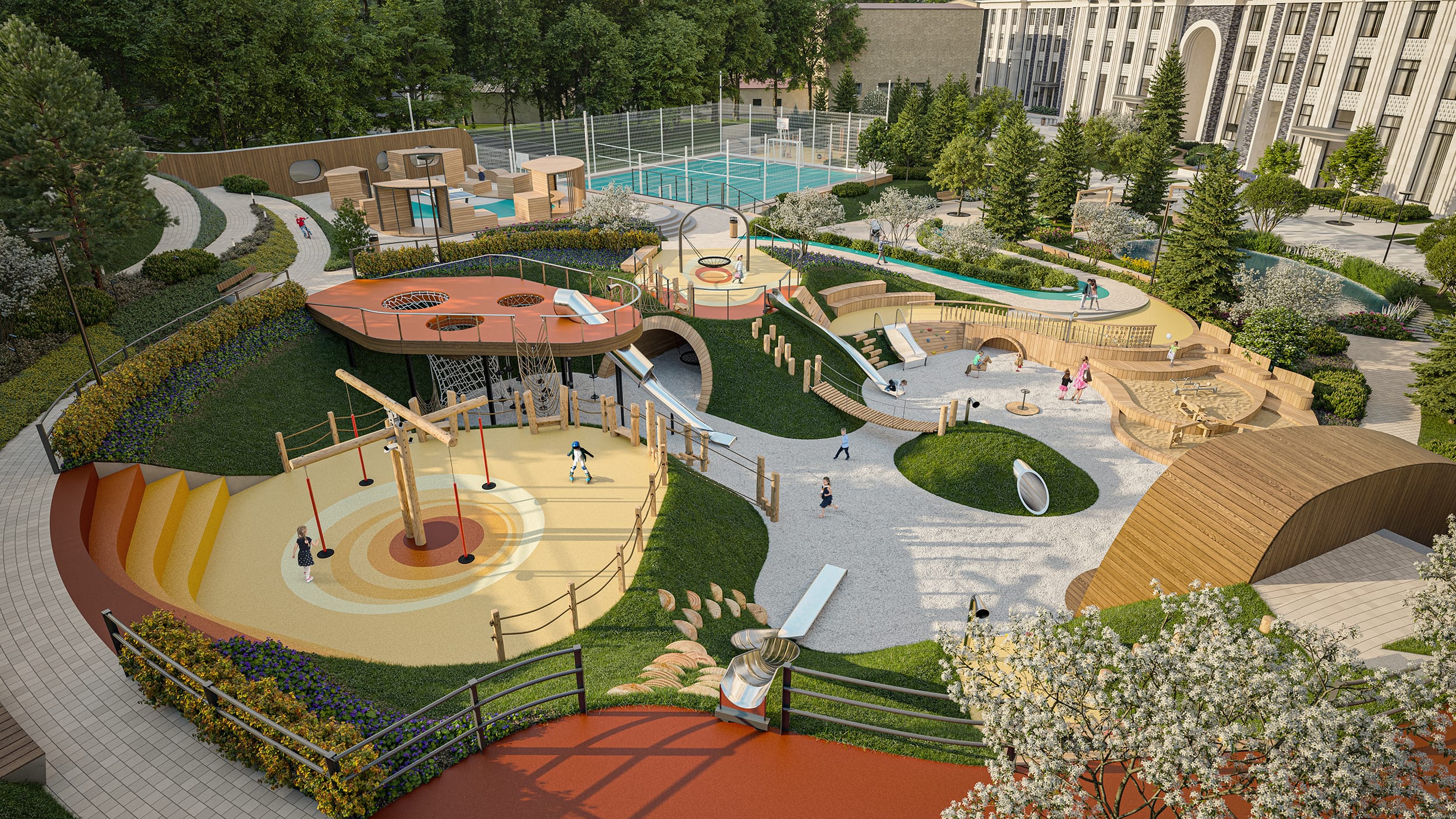 ☑ уникальная развивающая детская площадка площадью более 900 кв. м по концепции KID’S LAB от Sminex