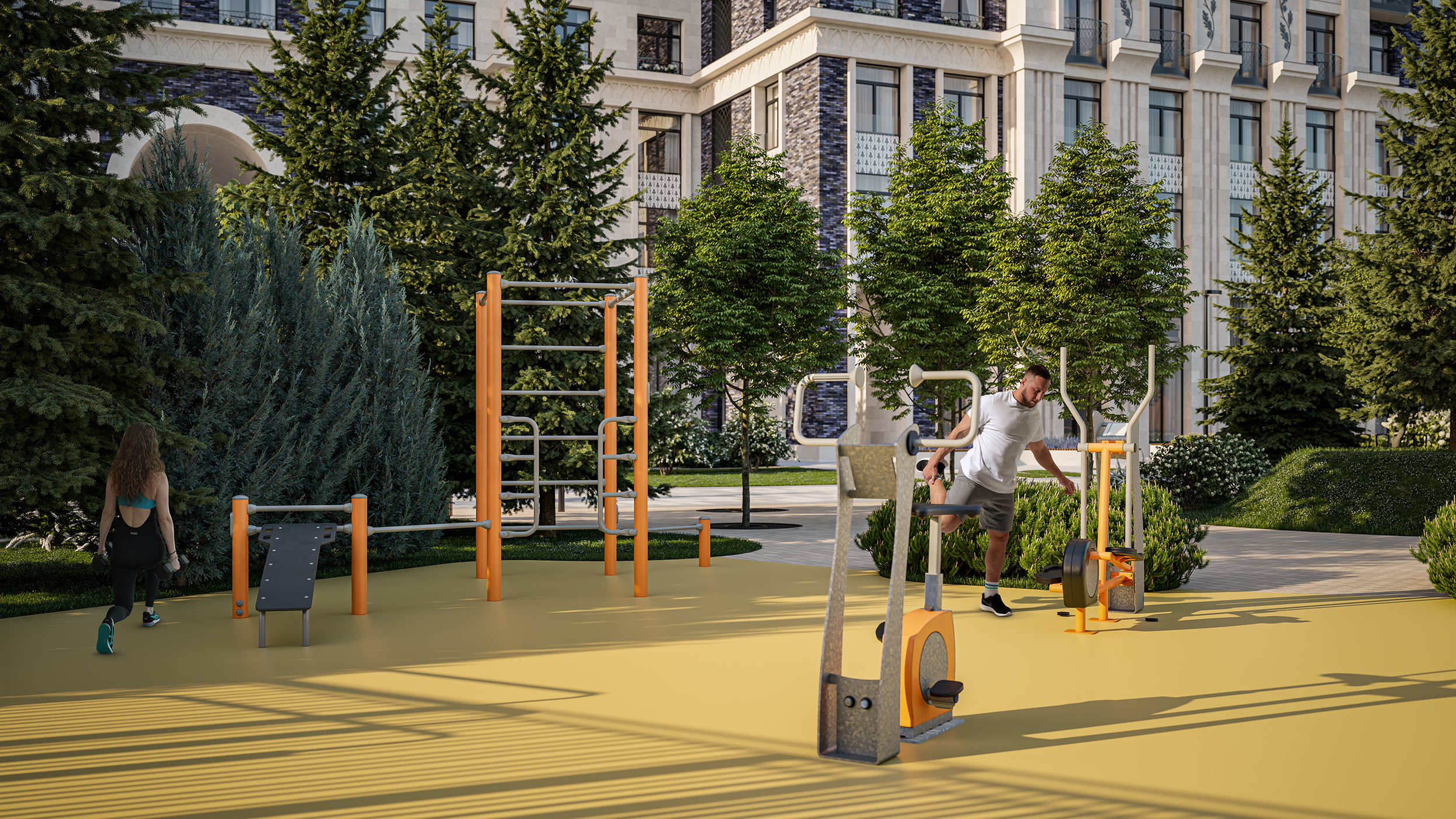 Для активного отдыха - бесплатный фитнес-клуб только для жителей площадью 430 кв. м.,  многофункциональная спортивная площадка 630 кв. м для игровых видов спорта и зоной workout, рассчитанная на жителей всех возрастов по стандарту FIT LAB от Sminex.