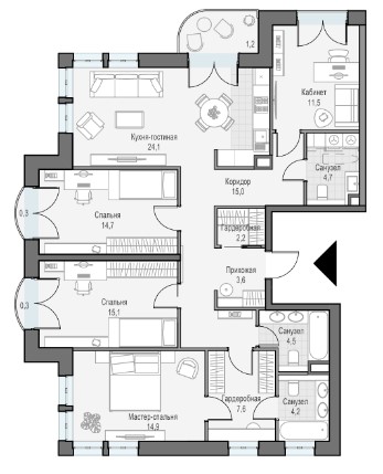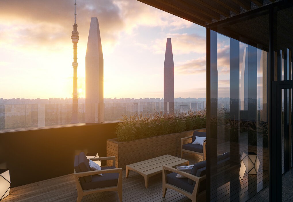 с открытыми террасами и просторными балконами. На верхних этажах расположены пентхаусы с высокими потолками, 6,5 м