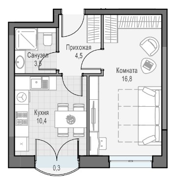1-комнатная квартира